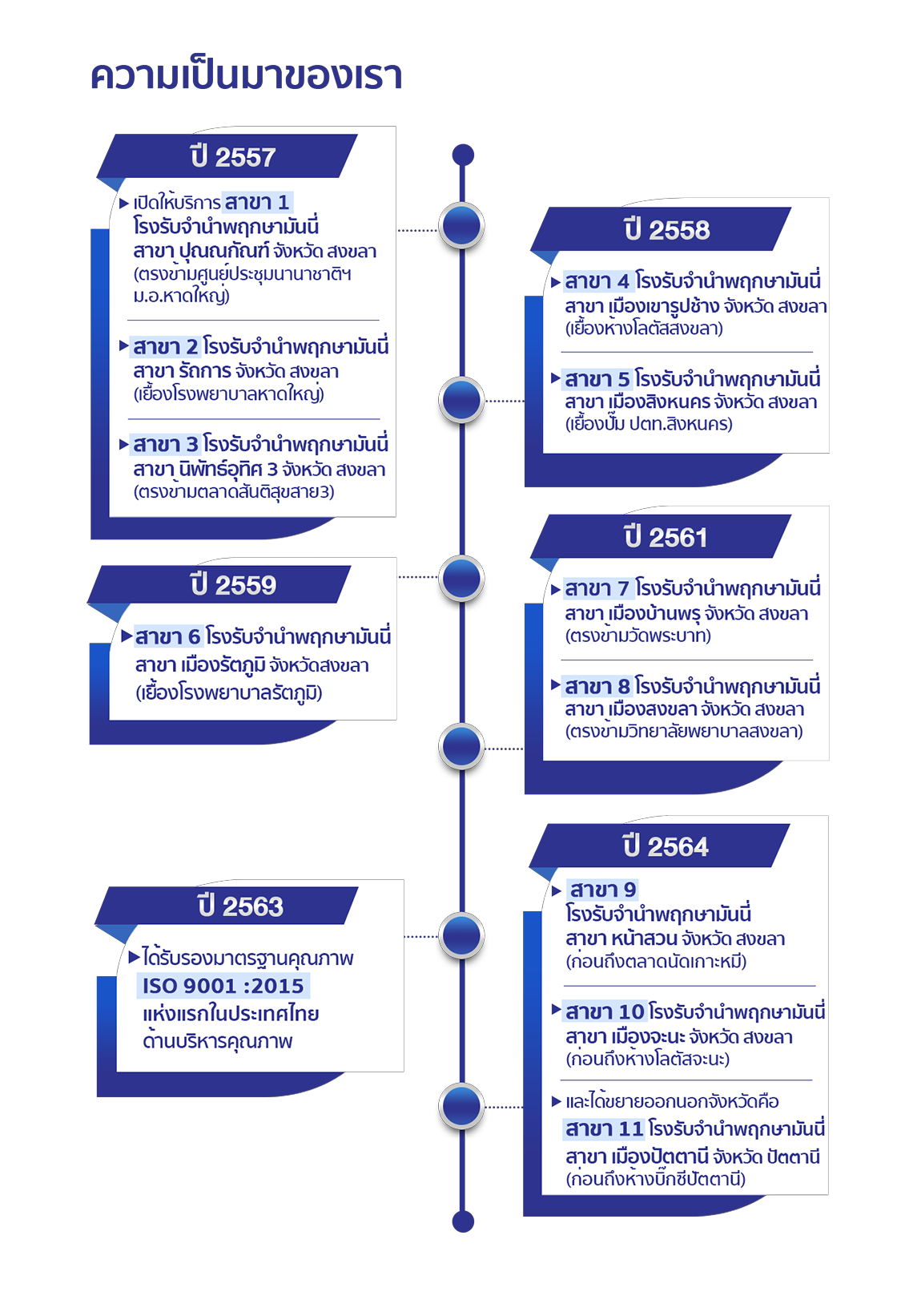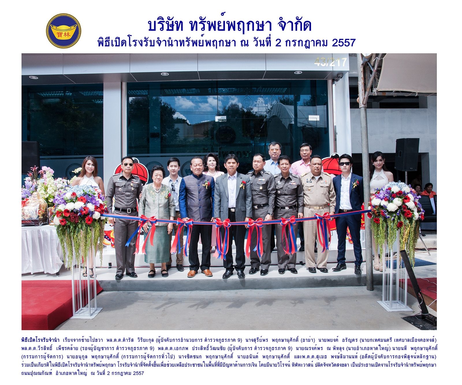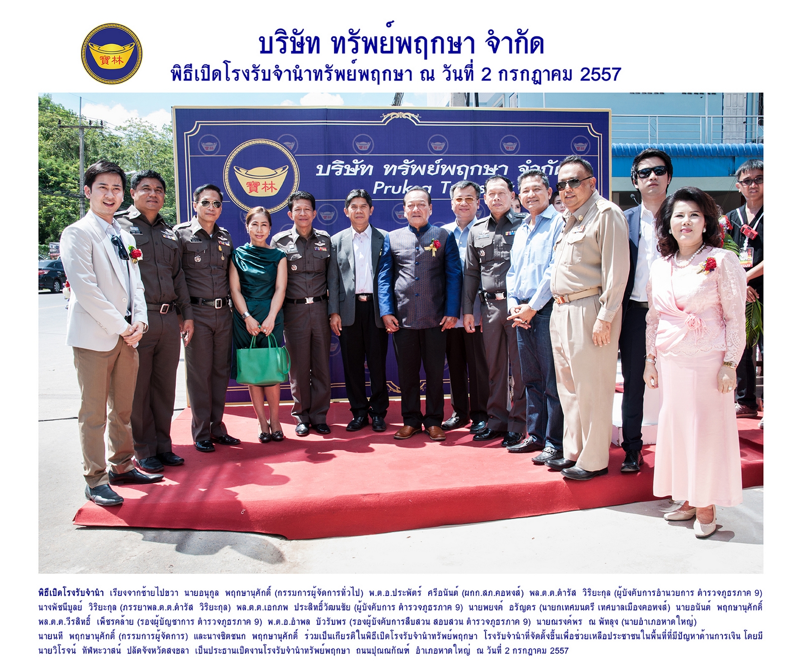 อีกทั้งโรงรับจำนำ จัดเป็นนิติบุคคลที่มีความเสี่ยงต่ำ ปัจจัยสำคัญของการดำเนินธุรกิจ คือ สภาพคล่องทางการเงิน ความสามารถในการบริหารจัดการสินทรัพย์ และความ แม่นยําในการประเมินหลักทรัพย์จึงเป็นที่มาของการเปิดกิจการในเวลาถัดมา โดยกิจการเปิดให้บริการครั้งแรก ในปี 2557 ณ ถนนปุณณกัณฑ์ อำเภอหาดใหญ่ จังหวัดสงขลา บริเวณติดกับ มหาวิทยาลัยสงขลานครินทร์ โดยมีท่านวิโรจน์ ทัฟหะวาสน์ ปลัดจังหวัดสงขลา เป็นประธานในพิธีเปิด โดยมี นายนที พฤกษานุศักดิ์ และนายอนุกูล พฤกษานุศักดิ์ ดำรงตำแหน่งกรรมการผู้จัดการ จนถึงปัจจุบัน